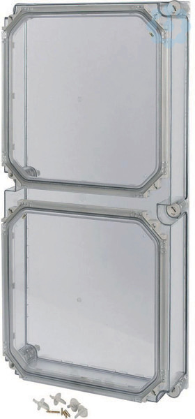 Deckel transparent rauchgrau mit 2 Türen, UL approbiert, Schutzart IP65, patentierter Deckelverschluss mit integriertem Überdruckausgleich, plombierbare Deckelverschlüsse, umlaufend geschäumte Dichtung, Einbautiefe bei Montageplatte=200mm, verwendbar für CI Unterteile E, X und V, Ausführung Verschlüsse: Betätigung mit Werkzeug (nicht zugänglich für Laien)