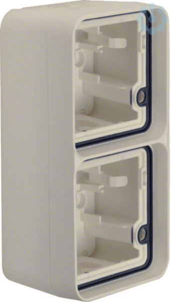 Gehäuseunterteil 2fach senkrecht mit Rahmen und Leitungseinf. AP W.1 polarweiß. Gehäuse 2-fach senkrecht, mit Rahmen AP. Für senkrechte Montage, mit einer Einführung für 2 Leitungen und einer Einführung für Leitung oder Rohr, vollflächige Dichtung unter dem Gehäuseboden zur Abdichtung der Gehäuserückseite, eine Wago 2-Leiter Verbindungsklemme für Verdrahtung beiliegend, zwei Einrastplätze für Wago 2-Leiter Verbindungsklemmen im Gehäuseboden. Nur bei Montage mit einem modularen Einsatz AP/UP der Produktlinie W.1 wird der Schutzgrad IP55 erreicht.