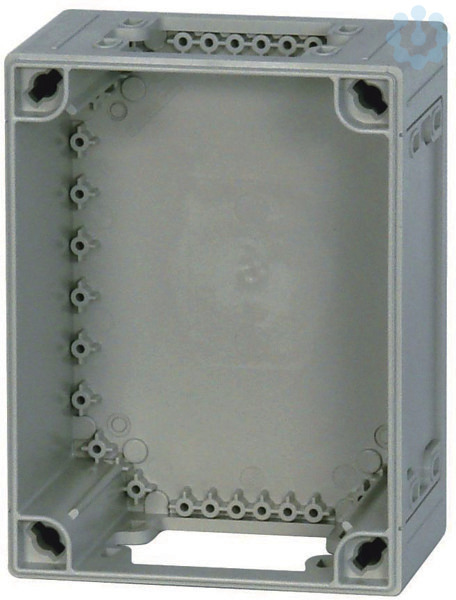 Verteilergehäuse-Unterteil, Material Polycarbonat, schlagfest, Seitenwände geschlossen, ausbrechbar, Wände oben und unten offen, RAL 7035, Umfangreiches Zubehör für Verteilerbau ist separat erhältlich