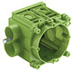 Geräteverbindungsdose für die liegende Werksfertigung, 1-teilig, 71 x 71 x 68 mm, Durchmesser 60 mm Ø, mit vergrößertem Anschlussraum, 4 Schraubdome mit Schraubabstand 60 mm, kombinierbar, mit Krallenbefestigung, kombinierbar im Normabstand 71 mm, geeignet auch für Gegenschalung, VDE zertifiziert nach DIN EN 60670 (VDE 0606) , mit Schutzart IP30, für Betoneinbau, bis 90°C, Prüfzeichen VDE, Halogenfrei, x 71 x 67.5, offenes Fronteil für Ratec-Haftmagnet