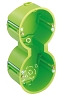 Gerätedoppeldose HW 050/2 WD, Hohlwand-Gerätedoppeldose, flammwidrig, für Plattenstärken von 1 bis 40 mm, mit angespritzten, patentierten Kombibrücken und Lochwerkzeug, Geräteschraubenabstand 60 mm , mit Schutzart IP30 , 139 x 68 x , mit geschlossenen Membran-Einführungen, Bohrloch Ø 2 x 68mm, 50mm tief, Kombinationsabstand 71mm