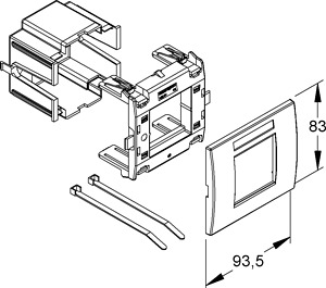 Geräteeinbausystem, Leerdose, einfach, waagerecht, komplett mit Adapter- und Abdeckrahmen, für Einbaugeräte mit Abmessungen 45 x 45 mm, zum Aufrasten in die Deckelaufnahmekontur der Gerätekanäle. Empfohlen bei normaler Beanspruchung. Für besondere Beanspruchungen (z.B. Schulen, Werkstätten, Sporthallen) empfehlen wir die Verwendung unserer Geräteeinbaudosen GDHR... in Verbindung mit einem adäquaten Schalterprogramm. Der Querschnitt ca. 2880 mm² ist vom nutzbaren Querschnitt des Gerätekanals abzuziehen. Set besteht aus: 1 x Schutzdose, einfach, grau 1 x Geräteadapter, einfach, Modul 45, mit 4 Federclips 1 x Abdeckrahmen, einfach, Modul 45, einschließlich Sichtfenster mit Etikett für Beschriftungsfeld 2 x Kabelbinder für die Zugentlastung für Gerätekanalunterteile : GKU ... DKU ... PGU ... PLU ... GAU ... DAU ... ESDB 133/.