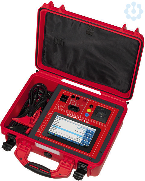Benning ST 755+. Gerätetester zur Prüfung elektrischer Geräte/ Arbeitsmitteln gemäß DIN VDE 0701-702, DGUV Vorschrift 3, BetrSichV und medizinisch-elektrischer Geräte gemäß DIN VDE 0751-1, DIN EN 62353 Typ B, BF, CF, Krankenhaus-/ Pflegebetten. Anzeige graphisch. Grenzwertanzeige ja. Messungen: Isolationswiderstandsmessbereich 0.1 MOhm - 100 MOhm. Nennprüfspannung 100 V. Nennprüfspannung 250 V. Nennprüfspannung 500 V. Nennspannung 1000 V. Einstellbar. Schutzleiterwiderstandsmessbereich 0.05 Ohm - 10 Ohm. Prüfstrom 600 mA/10A. Ersatzableitstrom ja. Differenzstrom ja. Direkte Messung ja. Schutzleiterstrom ja. Berührungsstrom ja. Schutzleiter-/Berührungsstrom 0.03 mA - 25 mA. Verbraucherstrommessung ja. Leistungsmessung ja. Funktionstest V/A/W im True RMS Echteffektivwertmessverfahren. Prüfung mobiler PRCDs, wie PRCD-S/-S+/-K und des Typs AC/A/F/B/B+. Anschluss für externe Messadapter ja. Prüfung 3-phasiger Verbraucher über optionale Messadapter. Weitere Messadapter optional erhältlich. Prüfen von Verlängerungsl