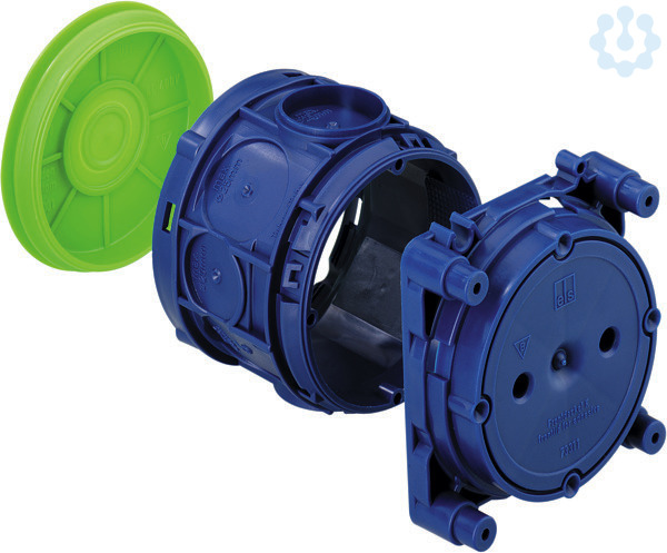 Geräteverbindungsdose für Betoneinbau in Fertigteilwerken, 3-teilig, 4 Schraubdome mit Schraubabstand 60mm, kombinierbar im Normabstand 71mm, vollisolierter Leitungsübergang, geeignet für alle Schalungsarten und Gegenschalung, VDE zertifiziert nach DIN EN 60670 (VDE 0606), mit glatter Stirnseite für Nagel- und Klebebefestigung