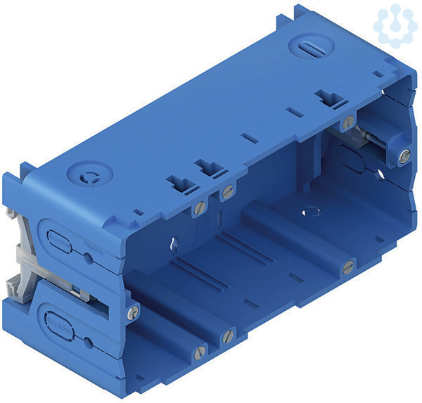 Geräteeinbaudose, zweifach, mit seitlich vorgeprägten runden Öffnungen für Kabeleinführungen bis max. Ø 13 mm, zur Befestigung im Kanalboden der Gerätekanalunterteile BU65...., für die Aufnahme von Mehrfachsteckdosen oder Gerätekombinationen, Ausführung für den niederländischen Markt, halogenfrei. Der Querschnitt ca. 3642 mm² ist vom nutzbaren Querschnitt des Gerätekanals abzuziehen. VDE zertifiziert! Abmessungen (ca. Maße) H x B x T : 71 x 142 x 59 mm für Deckelöffnung : 80 mm Schutzart : IP20 Werkstoff Dosenkörper : PP (Polypropylen) Werkstoff Schrauben/Bef.-Laschen : Stahl, galvanisch verzinkt Farbton : enzianblau RAL : 5010 (ähnlich)