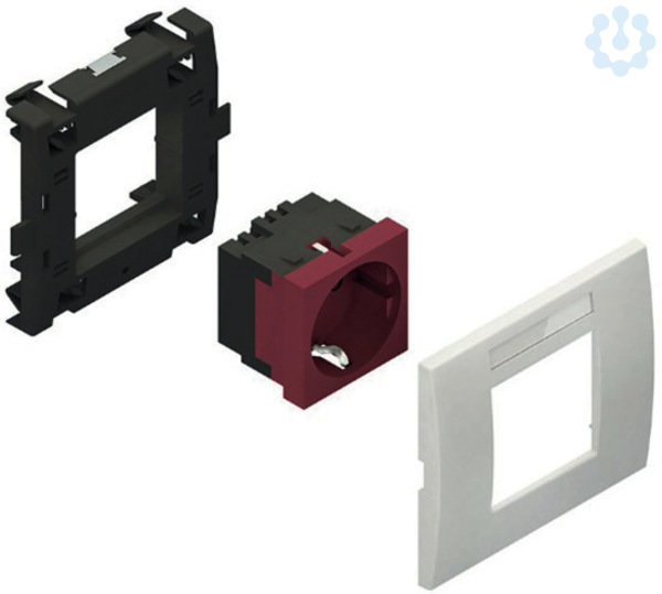 Set besteht aus : 1 x Geräteadapter, einfach, Modul 45, mit 2 Federclips 1 x Steckdoseneinsatz, einfach, waagerecht, mit Steckklemmen für Leitungen 1,5 - 2,5 mm², 2-polig, mit Berührungsschutz 1 x Abdeckrahmen, einfach, Modul 45, einschl. Sichtfenster mit Etikett für Beschriftungsfeld 1 x Montageanleitung.