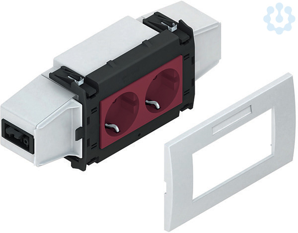 Geräteeinbausystem, vorkonfektioniert, zweifach, waagerecht, anschlussfertig vorverdrahtet, komplett mit Adapter- und Abdeckrahmen, mit Steckdoseneinsatz für EDV-Stromkreise, der Anschluss erfolgt über vorkonfektionierte Leitungen mit GST18i 3-poligen Stecker- und Buchsenenden, zum Aufrasten in die Deckelaufnahmekontur der Gerätekanäle. Empfohlen bei normaler Beanspruchung. Für besondere Beanspruchungen (z.B. Schulen, Werkstätten, Sporthallen) empfehlen wir die Verwendung unserer Geräteeinbaudosen GDHR... in Verbindung mit einem adäquaten Schalterprogramm. Der Querschnitt ca. 2880 mm² ist vom nutzbaren Querschnitt des Gerätekanals abzuziehen. Set besteht aus: 1 x Schutzdose, zweifach, grau 1 x Geräteadapter, zweifach, Modul 45, mit 4 Federclips 1 x Steckdoseneinsatz, zweifach, waagerecht, mit vorkonfektioniertem Stecker- und Buchsenteil 1 x Abdeckrahmen, zweifach, Modul 45, einschließlich Sichtfenster mit Etikett für Beschriftungsfeld 1 x Montageanleitung für Gerätekanalunterteile : GKU ...