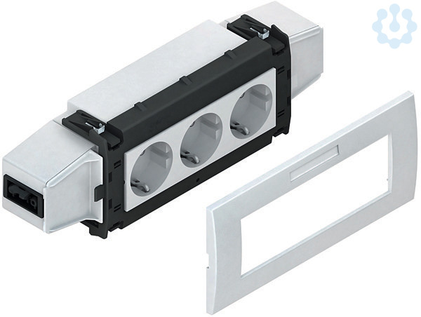 Geräteeinbausystem, vorkonfektioniert, dreifach, waagerecht, anschlussfertig vorverdrahtet, komplett mit Adapter- und Abdeckrahmen, mit Steckdoseneinsatz für Allgemeinstromkreise, der Anschluss erfolgt über vorkonfektionierte Leitungen mit GST18i 3-poligen Stecker- und Buchsenenden, zum Aufrasten in die Deckelaufnahmekontur der Gerätekanäle. Empfohlen bei normaler Beanspruchung. Für besondere Beanspruchungen (z.B. Schulen, Werkstätten, Sporthallen) empfehlen wir die Verwendung unserer Geräteeinbaudosen GDHR... in Verbindung mit einem adäquaten Schalterprogramm. Der Querschnitt ca. 2880 mm² ist vom nutzbaren Querschnitt des Gerätekanals abzuziehen. Set besteht aus: 1 x Schutzdose, dreifach, grau 1 x Geräteadapter, dreifach, Modul 45, mit 4 Federclips 1 x Steckdoseneinsatz, dreifach, waagerecht, mit vorkonfektioniertem Stecker- und Buchsenteil 1 x Abdeckrahmen, dreifach, Modul 45, einschließlich Sichtfenster mit Etikett für Beschriftungsfeld 1 x Montageanleitung für Gerätekanalunterteile : GKU ...