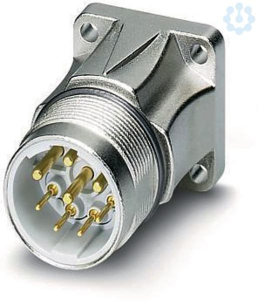 Gerätesteckverbinder, Vorderwand, gerade, für Standard- und SPEEDCON-Verriegelung, M23, Polzahl: 5+PE, Kontaktart: Stift, O-Ring axial, 4x Ø 3,2, geschirmt: ja, Flanschmaß: 26 mm x 26 mm, Schutzart: IP67, Kabeldurchmesserbereich: 0 mm ... 0 mm, Kompatibel zu Gegensteckern mit SPEEDCON- oder M23-Standard-Rändelmutter, Polzahl: 6, Anschlussart: Crimpanschluss
