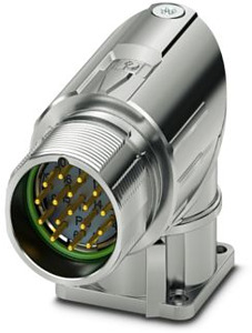 Gerätesteckverbinder, Vorderwand, M23 PRO, gewinkelt drehbar, für Standard- und ONECLICK-Schnellverriegelung, M23, Polzahl: 17, Kontaktart: Stift, Crimpanschluss, Flanschmaß: 28 mm x 28 mm, Kodierung:N