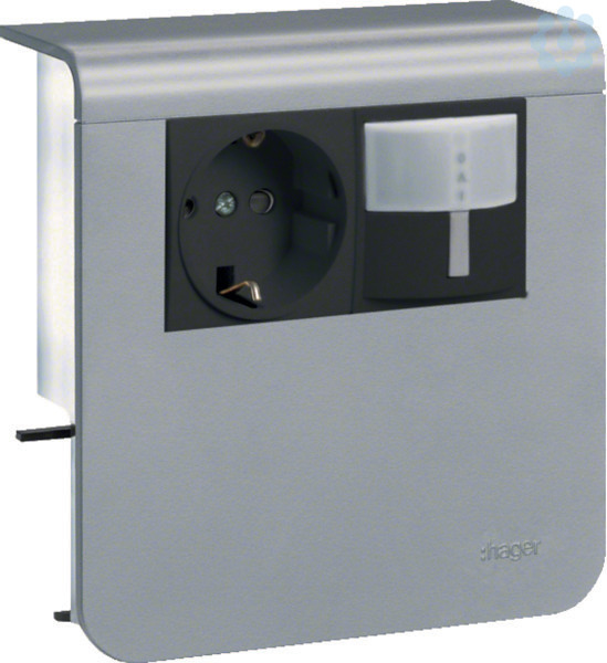 Geräteträger Steckdose+PIR zu Sockelleistenkanal SL 20x80mm Dekor Aluminium. Geräteträger zum Elektro-Installationskanal-System Sockelleistenkanal nach DIN EN 50085-1 als Geräteeinbaukanal. Komplett vormontierte Geräteträger zum Aufrasten auf das Sockelleistenkanal-Unterteil bestehend aus Geräteträger-Unterteil mit Arretierschraube, Steckdose SCHUKO® mit erhöhtem Berührungsschutz, 3-Leiter Steckklemmen, Bewegungsmelder und Geräteträger-Oberteil. Hinweis: Geräteträgerschürze als Abdeckung des Kanal-Unterteils unterhalb des Geräteträgers zum Aufrasten auf den Geräteträger ist nicht enthalten.