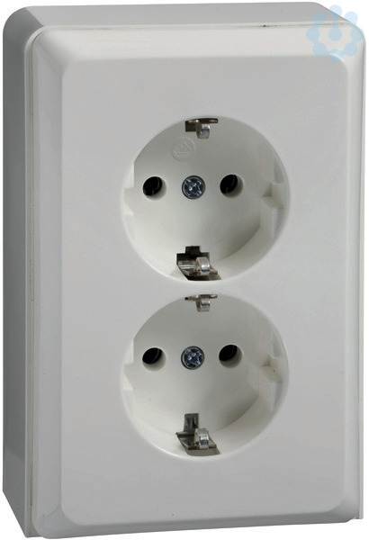Steckdose im Geräteträger für Kanalanschluss oder Abschlussplatte 16 A 250V AC, 2-fach. Farbe: reinweiß, Schraubklemmen: Klemmbereich für je zwei Kupferleiter 1,5 mm oder 2,5 mm, für den sicheren Anschluss von unvorbehandelten Aluminiumleitern 2,5 mm.
