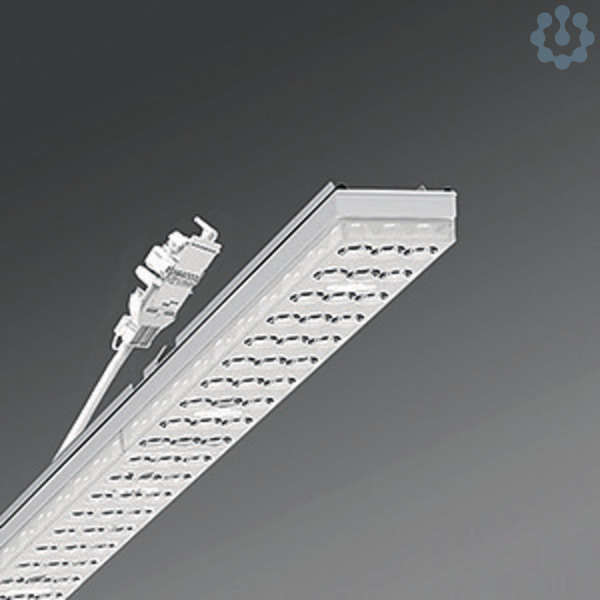 Geräteträger aus verzinktem, profiliertem Stahlblech, Oberfläche mit Polyesterharz beschichtet. Werkzeuglose Befestigung mit design-integrierten Druckverschlüssen gewährleisten einen Diebstahl- und Demontageschutz. Integrierte Stirnseiten aus Kunststoff mit Dichtlippen und eine umlaufend geschlossene Dichtung zur Tragschiene für Schutzart bis IP54. In der Tragschiene variabel positionierbar. Lichtverteilung direkt breitstrahlend mittels Individual.Lens.Optic aus Kunststoff PMMA. Die Einzellinsenoptik enthält eine transparente Dichtung, sorgt für eine hohe Montagefreundlichkeit und ist wartungsfreundlich durch leicht zu reinigende Oberfläche. Der Rhythmus der 3-reihigen Einzellinsen-Anordnung ist innerhalb und Geräteträger übergreifend perfekt aufeinander abgestimmt und gewährleistet ein homogenes Erscheinungsbild im Objekt. Mit Notlicht Batterie 3h und integrierter Statusanzeige, Dreistündiger Notlichtbetrieb. Elektrische Verbindung mittels Anschlussleitung 1 m zur variablen Geräteträgerpositionierung im Lich