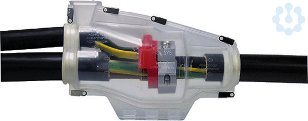 Gießharz-Hausanschlussmuffe zum Abzweigen von Kabeln mit Isolierungen aus PVC, PE und VPE. Mit Kabelabzweigklemme, Geeignet für Kupfer- und Aluminiumleiter. Anwendungsgebiete: Innenraum, Freiluft, Erdreich, Wasser, Installationskanäle. Eigenschaften: Hochwertige, transparente, schlagfeste Kunststoff-Formschalen, Geeignet für Schrägverguss bei 45Ã?Æ?ââ?¬Å¡Ã?â??Ã?° und Radiallage bis 45Ã?Æ?ââ?¬Å¡Ã?â??Ã?°, Abgestimmt auf eine Systemklemme mit spezieller Kontaktgeometrie. Für den Anschluss des Abzweigkabels im Sichtbereich, sichere Handhabung, Einfache Dichtbandmontage, große Einfüllöffnung für leichten Verguss, Arbeiten / Montieren unter Spannung möglich, beständig gegen chemische Einflüsse, beständig gegen Erdalkalien, stabilisiert gegen UV-Strahlen, hohe elektrische Isolationswerte, hohe mechanische Festigkeit, sofort betriebsbereit, einfache und schnelle Montage, zeit- und kostensparend