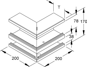 Doppelzügiges Gerätekanal-Außeneck 90°, aus bandverzinktem Stahl nach DIN EN 10346, Sichtflächen in RAL Farbton gemäß Herstellerkatalog elektrostatisch pulverbeschichtet, ohne Bodenlaschen für die Aufnahme der Trennstege, mit zwei mittels nachträglich montierbarem, selbstkontaktierenden Trennprofil aus Aluminium, getrennten unterschiedlich großen Leitungszügen, der Potentialausgleich erfolgt über die zwangsläufig kontaktierenden Stoßstellenverbinder DSTE.../DSTA..., bitte gesondert bestellen. VDE zertifiziert! Abmessungen (ca. Maße) H x T : 170 x 80 mm Schenkellänge außen : 200 mm Deckelöffnungen : 78 mm + 38 mm Teilung der Leitungszüge : 105 mm + 65 mm Farbton : weißaluminium RAL : 9006