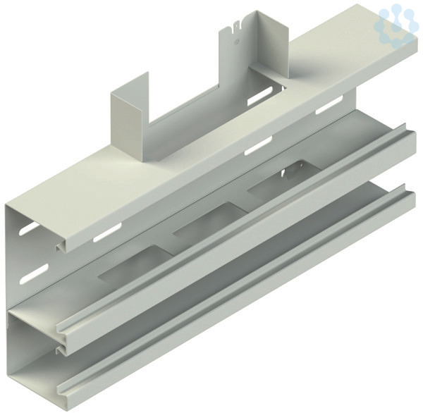 T-Stück 90°, doppelzügig asymmetrisch, ohne Bodenlaschen für die Aufnahme der Trennstege und ohne rückwärtiger Befestigungslochung, mit zwei, mittels nachträglich montierbarem, selbstkontaktierenden Trennprofil aus Aluminium mit Kabeldurchführöffnungen getrennten, unterschiedlich großen Leitungszügen, durch wechselseitige Anordnungsmöglichkeit des gelochten Trennprofils kann bauseitig der Abgang nach oben/unten mit nur einem Formstück realisiert werden, Sichtflächen in RAL Farbton gemäß Herstellerkatalog elektrostatisch pulverbeschichtet, der Potentialausgleich erfolgt über die Potentialausgleichsleitung GSLH... und den Stoßstellenverbinder GSVA... oder die Potentialausgleichsklemme GPK 63, wenn diese elektrisch mit dem Kanalunterteil verbunden werden, Zubehör für den Potentialausgleich bitte gesondert bestellen. Durchgehende Kanalhöhe H = abgehende Kanalhöhe H! VDE zertifiziert! Verwendung für : Gerätekanal DKU 170-78T70 C Abmessungen (ca. Maße) Höhe H x Tiefe T : 170 x 70 mm Läng