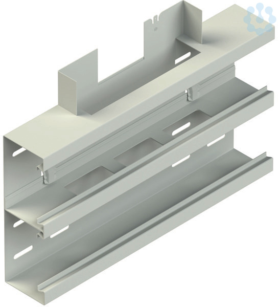T-Stück 90°, doppelzügig symmetrisch, ohne Bodenlaschen für die Aufnahme der Trennstege und ohne rückwärtiger Befestigungslochung, mit zwei, mittels nachträglich montierbarem, selbstkontaktierenden Trennprofil aus Aluminium mit Kabeldurchführöffnungen getrennten, gleich großen Leitungszügen, Sichtflächen in RAL Farbton gemäß Herstellerkatalog elektrostatisch pulverbeschichtet, der Potentialausgleich erfolgt über die Potentialausgleichsleitung GSLH... und den Stoßstellenverbinder GSVA... oder die Potentialausgleichsklemme GPK 63, wenn diese elektrisch mit dem Kanalunterteil verbunden werden, Zubehör für den Potentialausgleich bitte gesondert bestellen. Durchgehende Kanalhöhe H = abgehende Kanalhöhe H! VDE zertifiziert! Verwendung für : Gerätekanal DKU 220-78T90 VW Abmessungen (ca. Maße) Höhe H x Tiefe T : 220 x 90 mm Länge L : 400 mm Deckelöffnung : 78 mm und 78 mm Teilung der Leitungszüge : 110 mm und 110 mm