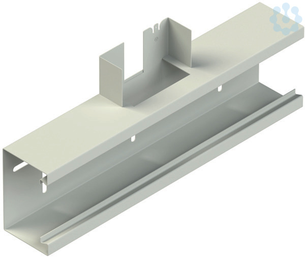 T-Stück 90°, einzügig symmetrisch, ohne Bodenlaschen für die Aufnahme der Trennstege jedoch mit rückwärtiger Befestigungslochung, Sichtflächen in RAL Farbton gemäß Herstellerkatalog elektrostatisch pulverbeschichtet, der Potentialausgleich erfolgt über die Potentialausgleichsleitung GSLH... und den Stoßstellenverbinder GSVA... oder die Potentialausgleichsklemme GPK 63, wenn diese elektrisch mit dem Kanalunterteil verbunden werden, Zubehör für den Potentialausgleich bitte gesondert bestellen. Durchgehende Kanalhöhe H = abgehende Kanalhöhe H! VDE zertifiziert! Verwendung für : Gerätekanal GKU 133-78T70 C Abmessungen (ca. Maße) Höhe H x Tiefe T : 133 x 70 mm Länge L : 400 mm Deckelöffnung : 78 mm einreihige horizontale Rückenlochung : 7 x 33 mm mittiger Lochabstand : 62,5 mm drei vertikale Rückenlochungen : 7 x 33 mm mittiger Lochabstand : 137,5 mm Farbton