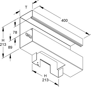 Gerätekanal-T-Stück 90°, aus bandverzinktem Stahl nach DIN EN 10346, Sichtflächen in RAL Farbton gemäß Herstellerkatalog elektrostatisch pulverbeschichtet, ohne Bodenlaschen für die Aufnahme der Trennstege, der Potentialausgleich erfolgt über die Potentialausgleichsleitung GSLH... und den Stoßstellenverbinder GSTA... oder die Potentialausgleichsklemme GPK 63, wenn diese elektrisch mit dem Kanalunterteil verbunden werden, Zubehör für den Potentialausgleich muss gesondert bestellt werden. Durchgehende Kanalhöhe = abgehende Kanalhöhe! VDE zertifiziert! Abmessungen (ca. Maße) H x T : 213 x 100 mm Länge : 400 mm Deckelöffnung : 78 mm (asymmetrisch) Abgang nach unten Farbton : cremeweiß RAL : 9001