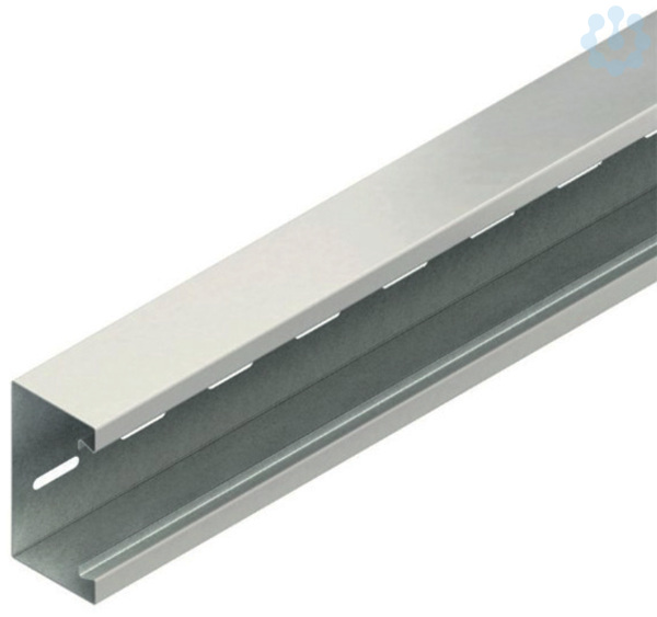 Gerätekanalunterteil, aus bandverzinktem Stahl nach DIN EN 10346, Sichtflächen in RAL Farbton gemäß Herstellerkatalog elektrostatisch pulverbeschichtet, durchlaufende Perforation im Kanalrücken zur flexiblen Montage auf Wand oder /-konsole, durchgehend Haltelaschen zur Aufnahme von Trennprofilen im Rückenteil, Gerätemontage im Leitungszug mit einrastbarer Gerätedose für Einbauprogramme mit 80 mm Abdeckrahmen und 60 mm Befestigungsspur, Geräteeinbau ohne Lochblenden, einschließlich 3 Kabelhalteklammern GKF... je 2 m Lieferlänge, Zubehör für den Potentialausgleich muss gesondert bestellt werden. VDE zertifiziert! Abmessungen (ca. Maße) H x T : 110 x 61 mm Deckelöffnung : 78 mm Lieferlänge L : 2000 mm Nutzbarer Querschnitt : 5352 mm² Farbton : lichtgrau RAL : 7035