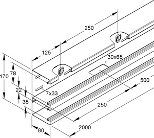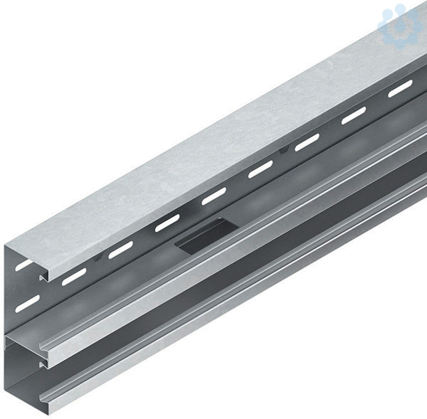 Doppelzügiges Gerätekanalunterteil, aus bandverzinktem Stahl nach DIN EN 10346, Sichtflächen in RAL Farbton gemäß Herstellerkatalog elektrostatisch pulverbeschichtet, mit zwei mittels nachträglich montierbaren, selbstkontaktierenden Trennprofil aus Aluminium mit Kabeldurchführöffnungen getrennten, unterschiedlich großen Leitungszügen, durchlaufende Perforation im Kanalrücken zur flexiblen Montage auf Wand oder /-konsole, durchgehend Haltelaschen zur Aufnahme von Trennprofilen im Rückenteil, Gerätemontage im Leitungszug mit 78 mm Deckelöffnung mit einrastbarer Gerätedose, für Einbauprogramme mit 80 mm Abdeckrahmen und 60 mm Befestigungsspur, Geräteeinbau ohne Lochblenden, einschließlich jeweils 3 Kabelhalteklammern für 78 mm und 38 mm Deckelöffnung je 2 m Lieferlänge, Zubehör für den Potentialausgleich muss gesondert bestellt werden. VDE zertifiziert! Abmessungen (ca. Maße) H x T : 170 x 80 mm Deckelöffnungen : 78 mm + 38 mm Teilung der Leitungszüge :