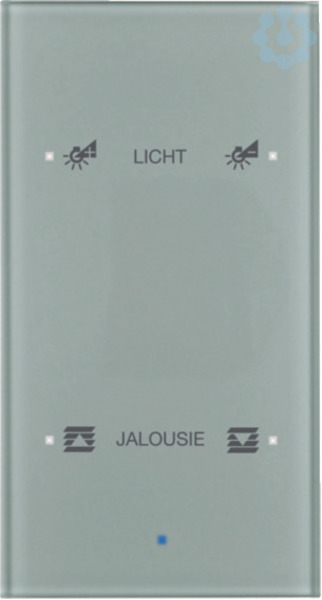 Glas-Sensor 2fach Komfort TS Sensor konfiguriert, alu. Glas-Sensor - konfiguriert 2-fach Komfort mit integriertem Busankoppler. Bedienung durch leichte Berührung der Sensorflächen an den weißen LEDs. Für Schalt-, Tast-, Dimm- und Jalousiefunktionen. Ein- und Zweiflächenprogrammierung. Einflächenbedienung für Schalten, Tasten, Dimmen und Jalousie. Nebenstelle für Lichtszenen-Tastsensor. Abrufen, Einstellen und Speichern von 8 Lichtszenen. Temperaturmessung über internen Temperaturfühler oder externes Kommunikations-Objekt, integrierter Temperaturfühler zum Betrieb als Regler-Nebenstelle. Zusätzlicher Anschluss für externen Temperaturfühler. Wertgeber für Dimm-, Positions-, Helligkeits- und Temperaturwerte 1 und 2 Byte. Busanschluss über Anschlussklemme. Für senkrechte Montage. Mit blauer Betriebs-LED und 4 weißen Status-LEDs. Zur Montage unbedingt die flache Einbaudose 2-fach verwenden. Nur für KNX geeignet!