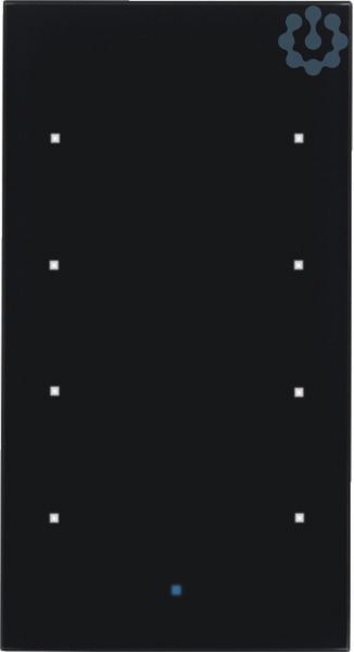 Glas-Sensor 4fach Komfort TS Sensor, schwarz. Glas-Sensor 4-fach Komfort mit integriertem Busankoppler. Bedienung durch leichte Berührung der Sensorflächen an den weißen LEDs. Für Schalt-, Tast-, Dimm- und Jalousiefunktionen. Ein- und Zweiflächenprogrammierung. Einflächenbedienung für Schalten, Tasten, Dimmen und Jalousie. Nebenstelle für Lichtszenen-Tastsensor. Abrufen, Einstellen und Speichern von 8 Lichtszenen. Temperaturmessung über internen Temperaturfühler oder externes Kommunikations-Objekt, integrierter Temperaturfühler zum Betrieb als Regler-Nebenstelle. Zusätzlicher Anschluss für externen Temperaturfühler. Wertgeber für Dimm-, Positions-, Helligkeits- und Temperaturwerte 1 und 2 Byte. Busanschluss über Anschlussklemme. Für senkrechte Montage. Mit blauer Betriebs-LED und 8 weißen Status-LEDs. Zur Montage unbedingt die flache Einbaudose 2-fach verwenden. Nur für KNX geeignet!