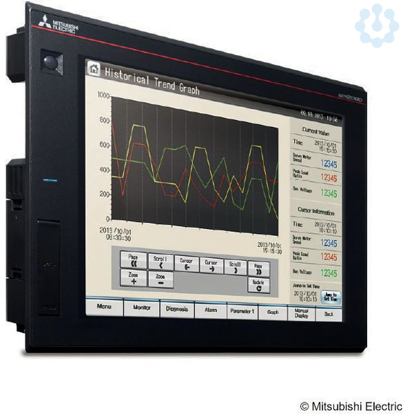 TFT-Display, 65 K Farben mit SVGA Auflösung und bis zu 128 MB internem Speicher. Das Gerät verfügt über Ethernet, USB, RS232 und RS422/485 Schnittstelle, sowie einen SD Kartensteckplatz. Zusätzlich kann das GT27 mit optionalen Schnittstellen wie CC-Link IE, CC-Link IE Field*, CC-Link, MELSECNET/H und einer direkten SPS Busanbindung ausgestattet werden. Es bietet umfangreiche vorgefertigte Diagnose- und Troubleshooting-Funktionen, wie Backup/Restore, SPS Programm Monitor, Device Monitor, Netzwerk Monitor, Servo/Motion Monitor, Motion SFC Monitor und CNC Monitor. Besondere Funktionen: Multi-Touch/Gestensteuerung, Multimedia Funktion, Debugging, Anzeigefunktion für Dokumente, Remote Zugriff auf das GOT (VNC-Server), GOT Mobile ? Webserver-Funktion, E-Mail, MES-Schnittstelle, FTP Server/Client, Operation Log, Datenerfassung, Multikanal, Transparent-Modus, Bediener-Authentifizierung, Backup/Restore, MELSEC-FX List Editor, Ablaufprogrammanzeige, Systemalarme, allgemeine Alarmverarbeitung, dezentraler Betrieb eines