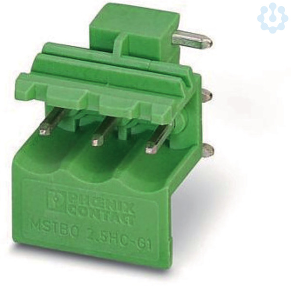 Leiterplattengrundleiste, Nennquerschnitt: 2,5 mm², Farbe: grün, Nennstrom: 12 A, Bemessungsspannung (III/2): 320 V, Kontaktoberfläche: Zinn, Kontaktart: Stift (male), Anzahl der Potenziale: 3, Anzahl der Reihen: 1, Polzahl pro Reihe: 3, Anzahl der Anschlüsse: 3, Artikelfamilie: MSTBO 2,5/..-G1R, Rastermaß: 5 mm, Montage: Wellenlöten, Pin-Layout: Lineares Pinning, Pinlänge [P]: 3,5 mm, Verriegelung: ohne, Verpackungsart: verpackt im Karton, Artikel mit seitlichem Pinabgang rechts