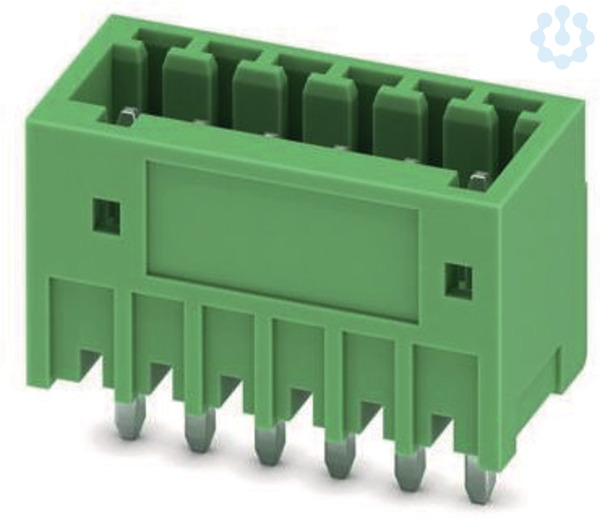Leiterplattengrundleiste, Nennquerschnitt: 0,5 mm², Farbe: grün, Nennstrom: 4 A, Bemessungsspannung (III/2): 160 V, Kontaktoberfläche: Zinn, Kontaktart: Stift (male), Anzahl der Potenziale: 6, Anzahl der Reihen: 1, Polzahl pro Reihe: 6, Anzahl der Anschlüsse: 6, Artikelfamilie: MCV 0,5/..-G, Rastermaß: 2,5 mm, Montage: Wellenlöten, Pin-Layout: Lineares Pinning, Pinlänge [P]: 3,5 mm, Stecksystem: MICRO COMBICON - FK-MC 0,5, Verriegelung: ohne, Befestigungsart: ohne, Verpackungsart: verpackt im Karton