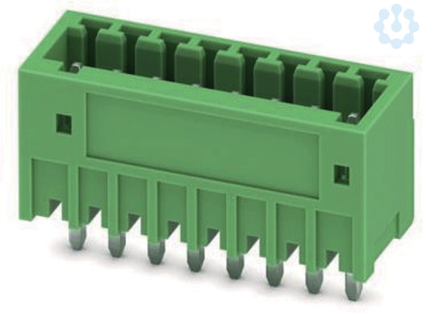 Leiterplattengrundleiste, Nennquerschnitt: 0,5 mm², Farbe: grün, Nennstrom: 4 A, Bemessungsspannung (III/2): 160 V, Kontaktoberfläche: Zinn, Kontaktart: Stift (male), Anzahl der Potenziale: 8, Anzahl der Reihen: 1, Polzahl pro Reihe: 8, Anzahl der Anschlüsse: 8, Artikelfamilie: MCV 0,5/..-G, Rastermaß: 2,5 mm, Montage: Wellenlöten, Pin-Layout: Lineares Pinning, Pinlänge [P]: 3,5 mm, Stecksystem: MICRO COMBICON - FK-MC 0,5, Verriegelung: ohne, Befestigungsart: ohne, Verpackungsart: verpackt im Karton