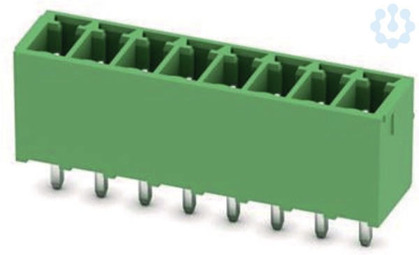 Leiterplattengrundleiste, Nennquerschnitt: 1,5 mm², Farbe: grün, Nennstrom: 8 A, Bemessungsspannung (III/2): 160 V, Kontaktoberfläche: Zinn, Kontaktart: Stift (male), Anzahl der Potenziale: 8, Anzahl der Reihen: 1, Polzahl pro Reihe: 8, Anzahl der Anschlüsse: 8, Artikelfamilie: MCV 1,5/..-G, Rastermaß: 3,5 mm, Montage: Wellenlöten, Pin-Layout: Lineares Pinning, Pinlänge [P]: 3,4 mm, Stecksystem: MINI COMBICON, Verriegelung: ohne, Befestigungsart: ohne, Verpackungsart: verpackt im Karton