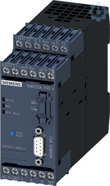 Grundgerät SIMOCODE pro V MR, MODBUS RTU-Schnittstelle 57,6 kBit/s, RS-485, 4E/3A frei parametrierbar, US: 24 V DC, Eingang für Thermistoranschluss monostabile Relais-Ausgänge, erweiterbar durch Erweiterungsmodule Motormanagement-System SIMOCODE pro V MR für umfassende Schutz-, Überwachungs-, Sicherheits- und Steuerfunktionen für Asynchronmotoren sowie detaillierte Betriebs-, Service- und Diagnosedaten für Prozessleitsysteme und Steuerungen über die gängigsten Feldbussysteme.Das variable und intelligente Motormanagement-System bietet die Möglichkeit viele Steuerfunktionen zu realisieren, z.B. für Polumschalter oder Schieberansteuerung, und funktioniert autark vom Automatisierungssystem. Im Zusammenspiel mit verschiedenen Erweiterungsmodulen sorgt es für ein umfangreiches Mengengerüst an Ein- und Ausgängen, Spannungs- und Leistungserfassung, fehlersichere Abschaltung von Motoren, genaue Erdschlusserfassung über den Differenzstromwandler 3UL23, Analogwertüberwachung sowie Temperaturerfassung. Je nach Ausführung