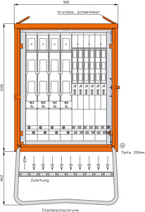 inkl. feuerverzinktem Untergestell mit Ösen für Erdnägel Schutzart : IP 44 Größe ca.: 1106 x 900 x 390mm / H-B-T + Untergestell-Höhe ca.: 462mm
