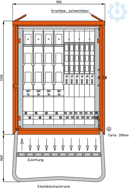 Abgang / Absicherung: 1 NH2-Sicherungslastschaltleiste 400A