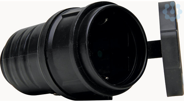 Gummi-Schutzkontakt-Kupplung mit Klappdeckel, IP44, mit Knickschutz,bruchfest, Einsatz: Polyamid, für Kabelquerschnitt bis 3x1,5mm², 16A, 250V~, schwarz
