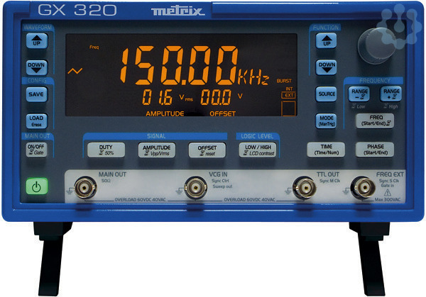 Der DDS-Funktionsgenerator GX 320 für 0,001 Hz bis 20 MHz erzeugt Signale, die in Frequenz und Form wesentlich genauer sind als die von herkömmlichen Generatoren. Mit ihm können präzise unterschiedlichste Signale erzeugt werden: Wellen, Sinus, Dreieck, Rechteck, LOGIC und TTL.