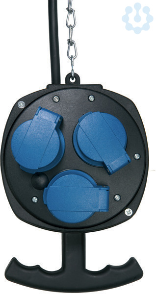 Ausgang: 2 x CEE 5-polig 400 V / 16 A, 6h + 3 Schutzkontaktsteckdosen mit Klappdeckel 230 V / 16 A, IP 44