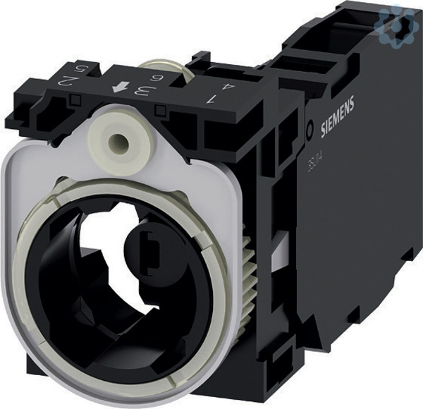 Halter, 3fach, Kunststoff, 1S+1Ö, LED-Modul, weiß, AC/DC 6-24 V, Schraubanschluss Halter SIRIUS ACT für die Befestigung von modularen Betätigern und Meldern. Standard: 3-fach-Halter, 4-fach-Halter nur in Verbindung mit Koordinatenschalter/Knebelschalter mit 4 Stellungen.Unter dem Markennamen SIRIUS ACT bietet Siemens ein einzigartiges Portfolio an Befehls- und Meldegeräten mit weltweiten Produkt-Zulassungen in vier modernen Designreihen aus robustem Echtmetall und hochwertigem Kunststoff.Das innovative Aufschnappkonzept vereinfacht die Montage so weit, dass dafür nur eine Hand und kein Spezialwerkzeug erforderlich ist. Als Montagebohrungen genügen nutfreie Löcher, da bereits ein 100%iger Verdrehschutz integriert ist.Dank der durchgängig hohen Schutzart sind die robusten Geräte industrietauglich und für den Außeneinsatz geeignet. Sogar die Reinigung mit Hochdruckstrahl ist möglich. Weder Staub, Öle noch aggressive Laugen können den zuverlässigen Betrieb stören.Neben der Standardverdrahtung können die Geräte au