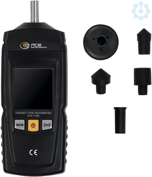 Zum Lieferumfang gehören neben dem Handtachometer ein Adapter und vier weitere Gummipads für verschiedene Messungen. Dieses Zubehör erweitert die Einsatz