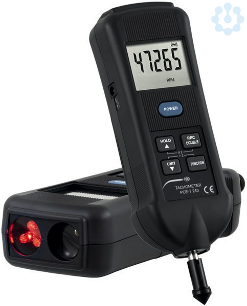 99.999 RPM. Um die Drehzahl auf das Handtachometer / Stroboskop zu übertragen befinden sich im Lieferumfang zwei gummierte Messspitzen, mit einem Innen- und einem Außenkegel. Bei der kontaktierenden Messung bei dem Handtachometer / Stroboskop kann zusätzlich über das Messrad die Geschwindigkeit in zum Beispiel m/min ermittelt werden.