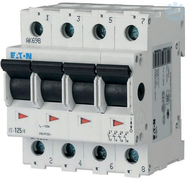 Lastschalter mit Trennfunktion, Ausführung entsprechend IEC/EN 60947-3, Hohe Verschleißfestigkeit der Kontakte, Sprungeinschaltung, Knebelfarbe schwarz, Klemmquerschnitt 50qmm, Verschienungskompatibel mit Xpole Schutzschaltgeräten bei Verwendung der Maulklemme in Kombination mit Standard Gabelverschienung