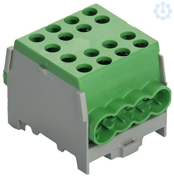 1 x grün / green / vert Hauptleitungs-Abzweigklemmen 1/4 M2 Minimodular anreihbar Montage auf 35 mm Tragschiene gem. EN 60715 Farbcodierung entsprechend gültigen Aderfarben Ui = 1000 V VDE zertifi ziert Klemmblock verzinnt. Für Aluminiumleiter geeignet. Die geringe Baugröße führt dazu, dass weniger Raum in der Verteilung benötigt wird. Es lassen sich jetzt 35/25 mm2-Abgänge realisieren, wo konventionell nur 25/16 mm2 möglich waren. Die minimodulare Anreihbarkeit führt zu einer bisher nicht gekannten Variabilität. Je nach Bedarf lassen sich die farbig gekennzeichneten Klemmen kombinieren und mit einem Werkzeug wieder lösen. PV-Eignung: Leitungseinführungen mit Isolierkragen ermöglichen den Einsatz der Klemme bis zu 1000 V Nennspannung gemäß VDE 0613 / EN 60998. Die Klemmen sind auch ohne angeschlossenen Leiter allseitig fingersicher. Für die Verwendung mit feindrähtigen Leitern ist die Klemmentiefe den üblichen Längen von Aderendhülsen angepasst (HLAK 35? - 25 mm, HLAK 25? - 16 mm). Die neuen Klemmen sind VDE-