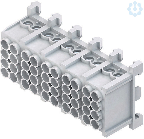 Hauptleitungs-Abzweigklemme 25 mm² nach DIN VDE 0603-2 allseitig fingersicher, mit Schnappbefestigung zur senkrechten und waagerechten Anbringung auf Tragschiene TS 35 mm deren Anschlussmaße DIN EN 60715 entsprechen, halogenfrei. Abmessungen (ca. Maße) H x B x L : 37 x 50,5 x 100 mm Klemmbereich eindrähtig, starr : 2,5 - 25,0 mm² Anschlussmöglichkeiten eindrähtig, starr : 1 x 2,5 mm², 1 x 4,0 mm², 1 x 6,0 mm², 1 x 10,0 mm², 1 x 16,0 mm², 1 x 25,0 mm² Polzahl : 5 Werkstoff Isolierteil : PA Werkstoff Kontakt : Messing Werkstoff Klemmschrauben : galvanisch verzinkter Stahl mit Podzidrive-Kombikreuzschlitzkopf Nennspannung : 400 V Farbton : lichtgrau RAL : 7035 (ähnlich)