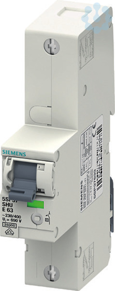 Hauptleitungsschutzschalter (SHU), 1-polig, E 63, 230/400V Der Leitungsschutzschalter ist der Sicherungsautomat für Kurzschlussschutz Die Leitungsschutzschalter von Siemens als wichtiger Bestandteil der SENTRON Schutzkomponenten für die Elektroinstallation bieten effektiven Personen- und Anlagenschutz durch sicheres Abschalten im Überlast- und Kurzschlussfall. Komfortable Montage- und Anschlusstechnik, einheitliche Zusatzkomponenten und ein durchgängiges Design - das sind die Kennzeichen der Gerätefamilie. Ob für Infrastruktur oder für industrielle Anforderungen, Siemens bietet Leitungsschutzschalter für alle Anwendungen und jedes Einsatzgebiet. Die Siemens Leitungsschutzschalter zeichnen sich vor allem aus durch: 1. Effektiven Personen-, Investitions- und Anlagenschutz vor Überlast und Kurzschluss. 2. Zuverlässige Sicherheit bei der Installation dank standardmäßig enthaltenem Umgreif- und Berührungsschutz. 3. Klar ersichtliche Schaltstellungsanzeige. 4. Optimale Technik für Ihre Sicherheit - nur von Siemens.