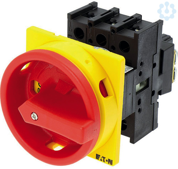 Hauptschalter, Sortiment: Hauptschalter, Wartungsschalter, Reparaturschalter, Typkenner: P1, STOPP-Funktion: NOT-AUS-Funktion, mit rotem Drehgriff und gelbem Sperrkranz, Information zum Lieferumfang: Hilfsschalterkontakt oder Neutralleiter nachrüstbar., 3-polig, Abschließbarkeit: abschließbar in 0-Stellung, Schutzart: Front IP65, Bauform: Einbau, Bemessungsbetriebsleistung AC-23A, 50 - 60 Hz 400 V: P = 11 kW, Bemessungsdauerstrom: Iu = 25 A, Normen und Bestimmungen: IEC/EN 60947, VDE 0660, IEC/EN 60204, CSA, UL, Lasttrennschalter nach IEC/EN 60947-3, NEMA12