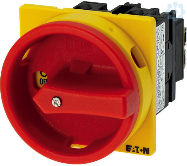 Hauptschalter, Sortiment: Hauptschalter, Wartungsschalter, Reparaturschalter, Typkenner: T0, STOPP-Funktion: NOT-AUS-Funktion, mit rotem Drehgriff und gelbem Sperrkranz, 3-polig, Abschließbarkeit: abschließbar in 0-Stellung, Schutzart: Front IP65, Bauform: Einbau, Schaltwinkel: 90 °, Bemessungsbetriebsleistung AC-23A, 50 - 60 Hz 400 V: P = 5.5 kW, Bemessungsdauerstrom: Iu = 20 A, 2 Baueinheit(en), Normen und Bestimmungen: IEC/EN 60947, VDE 0660, IEC/EN 60204, CSA, UL, Lasttrennschalter nach IEC/EN 60947-3