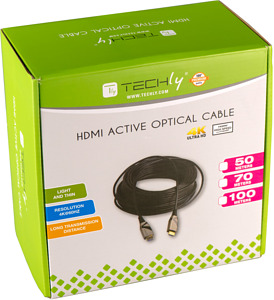 Das Aktive High Speed HDMI-Audio-Video-Kabel zeichnet sich durch einen Aufbau aus Kupfer- und Glasfaserleitungen aus und bietet eine leichtere und flexiblere Struktur, die sich ideal für die Installation in engen Räumen und für größere Entfernungen eignet: die ideale Lösung für Konferenzräume, Klassenzimmer und Leuchtschilder Das Hybrid-HDMI-Kabel ermöglicht die Übertragung hochwertiger Video- und Audiosignale für die Übertragung von Signalen über große Entfernungen ohne Qualitätsverlust. Signale von Quellen wie Blu-ray, Mediaplayer, DVD, SAT usw. werden von TV UHD und FullHD und Projektoren mit einer Auflösung von bis zu 4Kx2K empfangen. Das HDMI High Speed AOC Kabel unterstützt 4Kx2K / UHD-Videoauflösungen (max. 3840x2160 und 4096x2160 @ 60Hz), 1080p / FullHD, 1080i, 720p, 480p. Sowie Deep Color rye, HDCP 2.2, EDID, CEC und Audio Return Channel (ARC). Hinweis: Dieses Kabel verfügt über eine unidirektionale Architektur, bei der das Kabel in der richtigen Richtung installiert werden muss. Überprüfen Sie die B