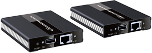 Dieser KVM HDMI Extender bietet ihnen die Möglichkeit ihren Arbeitsstation von einer Übertragungsdistanz von bis zu 60m mit nahezu null Latenz zu steuern. Übertragung von unkomprimiertem 1080p @ 60Hz HDMI-Signal über ein einzelnes Cat5 / 5e / 6-Netzwerkkabel. Es handelt sich hierbei um Set aus einen Sender (TX) und eine Empfängereinheit (RX), die als Paar arbeiten. Dabei kann der KVM-Extender das Quellgerät über Tastatur und Maus von der Empfängerseite aus fernsteuern. Es ist perfekt für den Anwendungsbereich bei Audio-Video-Übertragung von HD-Konferenzsystemen, HD-Videoaufnahmen, HD-Multimedia-Schulungssystemen, HD-Digitalwerbung und Digital Signage usw. geeignet. HDMI-KVM-Extender mit Low Latency-Netzwerkkabel Erweitert das HDMI-Signal auf bis zu 60 m und unterstützt die KVM-Funktion für Punkt-zu-Punkt-Verbindungen. Mit integriertem Mikrofon und Audioeingang 3,5 m Der Sender unterstützt einen HDMI-Loop-Ausgang Unterstützt eine Auflösung von bis zu 1080p @ 60Hz Echtzeitübertragung, geringe Latenz Unte