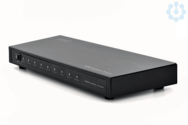 HDMI Splitter, 8 Port, 1080p, 3D, High Speed 2.25 Ghz/225 MHz, Metall-Gehäuse, schwarz, Mit dem dem Digitus 8-Port HDMI Splitter lässt sich ein Videosignal auf bis zu acht Wiedergabegeräte (TVs, Displays, Moniotoe, Beamer, etc.) verteilen. Unterstütz wird eine Videoauflösung von bis zu 1080p / Full HD. Er bietet die ideale Lösung für gewerbliche Andwendungen wie z.B. für Video-Wand Präsentationen oder Produktdarstellungen (Büro-/Geschäftsräume, Messestände, Schaufenster, Wartezimmer, Gastronomie, etc. Der Splitter ist einstufig kaskadierbar, es können bis zu acht weitere HDMI Splitter (8-Port) angeschlossen werden, um das Signal auf maximal 64 Wiedergabegeräte zu verteilen.